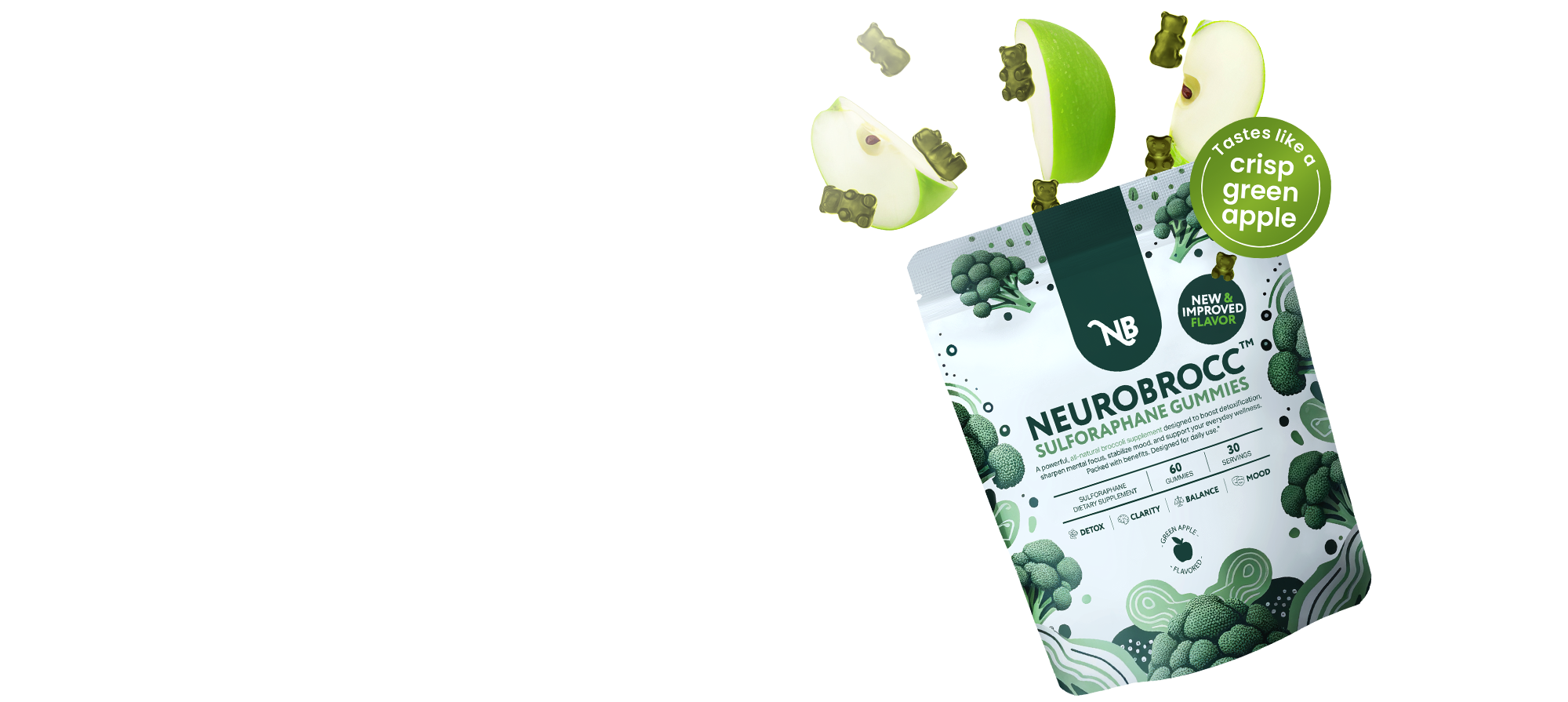 That's why we created NeuroBrocc - packed with sulforaphane, nature’s most powerful antioxidant found in broccoli and extensively studied at Johns Hopkins for its ability to: